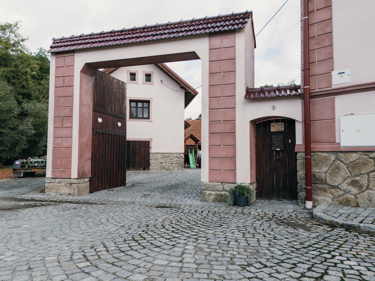 This charming historical farmhouse is nestled in the heart of the village, offering an authentic countryside experience. Surrounded by rolling hills and located on the edge of the picturesque Bohemian Forest, it provides a peaceful retreat for nature lovers and those seeking relaxation. The idyllic setting invites you to explore scenic hiking trails, enjoy fresh country air, and immerse yourself in the tranquil beauty of the surrounding landscape.