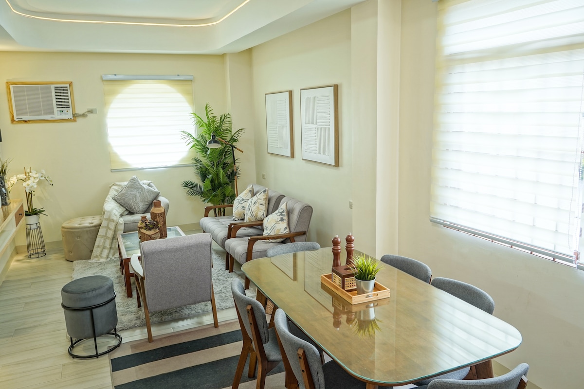 Your stylish home away from home — comfortable, convenient, and thoughtfully designed! ✈️ 5-min drive to the airport 🛍️ 10-min walk to a mall, fast food spots & cozy cafés 🏡 Warm, modern design with wood accents, stylish lighting & an open layout 🛏️ A cozy spacious bedroom for a restful stay - Sleeps 7 guests — perfect for families, friends, or work trips 🛋️ Inviting living area for relaxing or entertaining 🛜 Internet Provider Converge: Speed usually ranges from 50-150 mbps