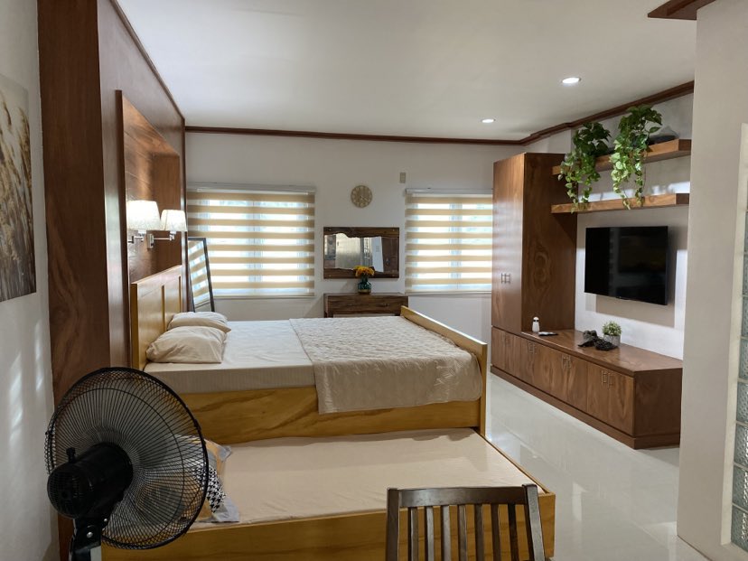 ●1 double-deck bed ●1 Semi double-size bed Up to 4 guests. - Recently Upgraded High-pressure water ●Air conditioning, ceiling fan with remote-controlled multi-colored lighting, and a stylish three-color LED mirror. ●Prepare meals with ease using our rice cooker, electric cooker, and complete kitchen utensils. ●Refrigerator ●Cozy Mini Living Room ●Laundry Area ●Wifi ●Smart TV Enjoy easy access to: - Robinsons Place Tacloban, McDonald's,Jollibee,Banks, Laundry shop,Carwash Shop,Gym,Church