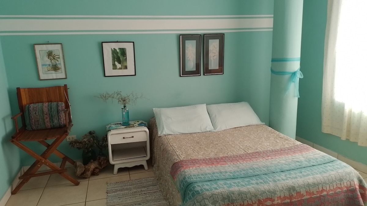 Cómodo estudio en primer piso (es interno, no tiene ventana a la calle, tiene ventana hacia un pasaje), con cama queen size, Smart TV de 40" con cable, cocina americana equipada con refrigerador, microondas, licuadora y menaje. Baño con tina. Especial para personas solas o pareja. En edificio con ingreso independiente, a 5 minutos del centro (caminando).
