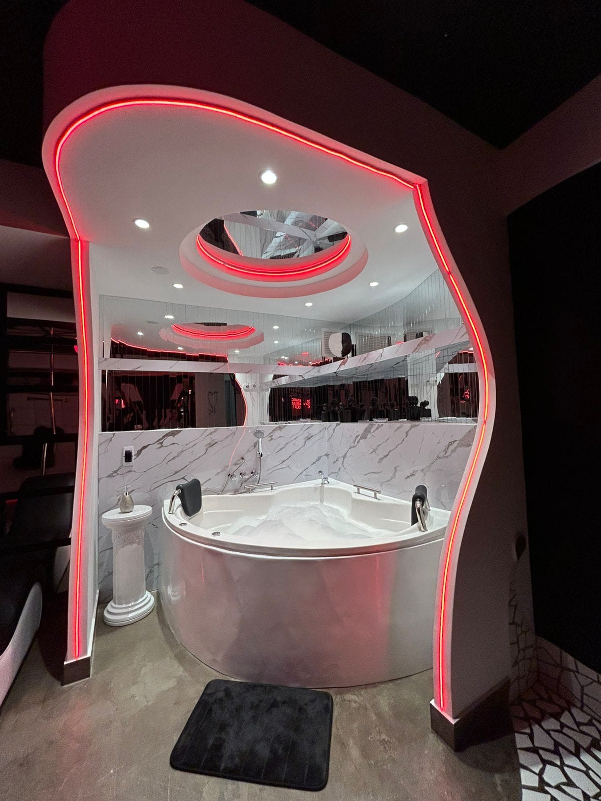 带红色房间和按摩浴缸的2卧室公寓