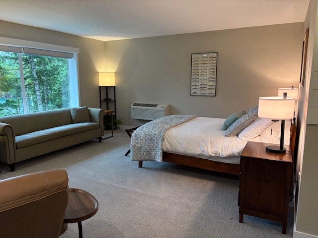 At the waters edge of Lake Tapps you’ll find our cabana. It’s hidden and private within our residential property. You’ll have the entire waterfront to yourself. Fish off the dock, kayak, or just relax in seclusion. Outdoors you’ll find a large covered porch, fireplace and hot tub. Inside- a queen wall Bed, small sofa bed, fireplace, cable TV, Wifi. Neighbors are not close. Please be aware the shower is in an outdoor room accessed through the bathroom.