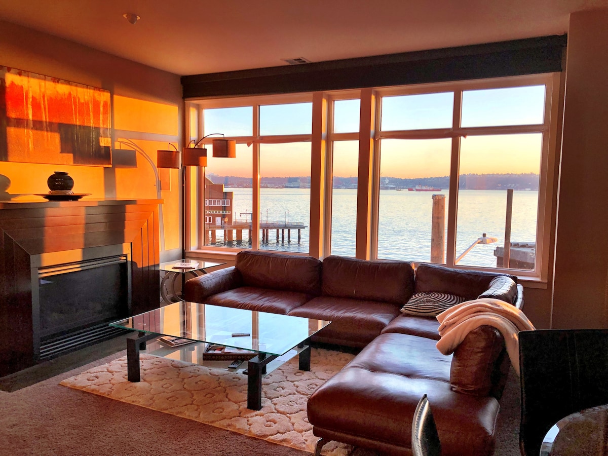 This is one of the few units directly on the waterfront in downtown Seattle. The best views of Elliott Bay, the ferries and scenic sunsets over the water. It is just steps from Pike Market, Cruise Terminal, Aquarium, Ferries, Victoria Clipper, Belltown, and Sculpture Park. For business travelers - within walking distance of the Financial District. Minutes from Queen Anne, Financial District, Space Needle, and the stadiums. Walkability Score: 95+