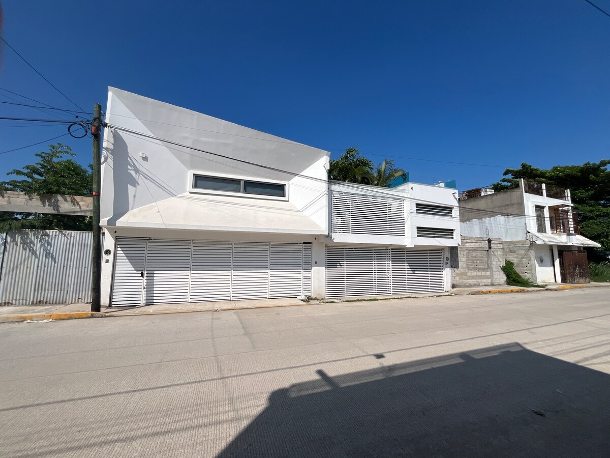 Cuando visites Pichucalco te quedarás en una casa moderna y con estilo único; amueblada, climatizada, segura y con una ubicación excelente en una de las mejores zonas de la ciudad, caminando tendrás cerca: oficinas, gimnasio, terminal de autobuses, tiendas, farmacias y otros lugares que harán confortable tu estancia. La casa cuenta con tres recámaras cada una con baño, la principal con vestidor, wifi, cocina equipada, cochera con portón eléctrico, boiler, cisterna, patio de servicio y de lavado.