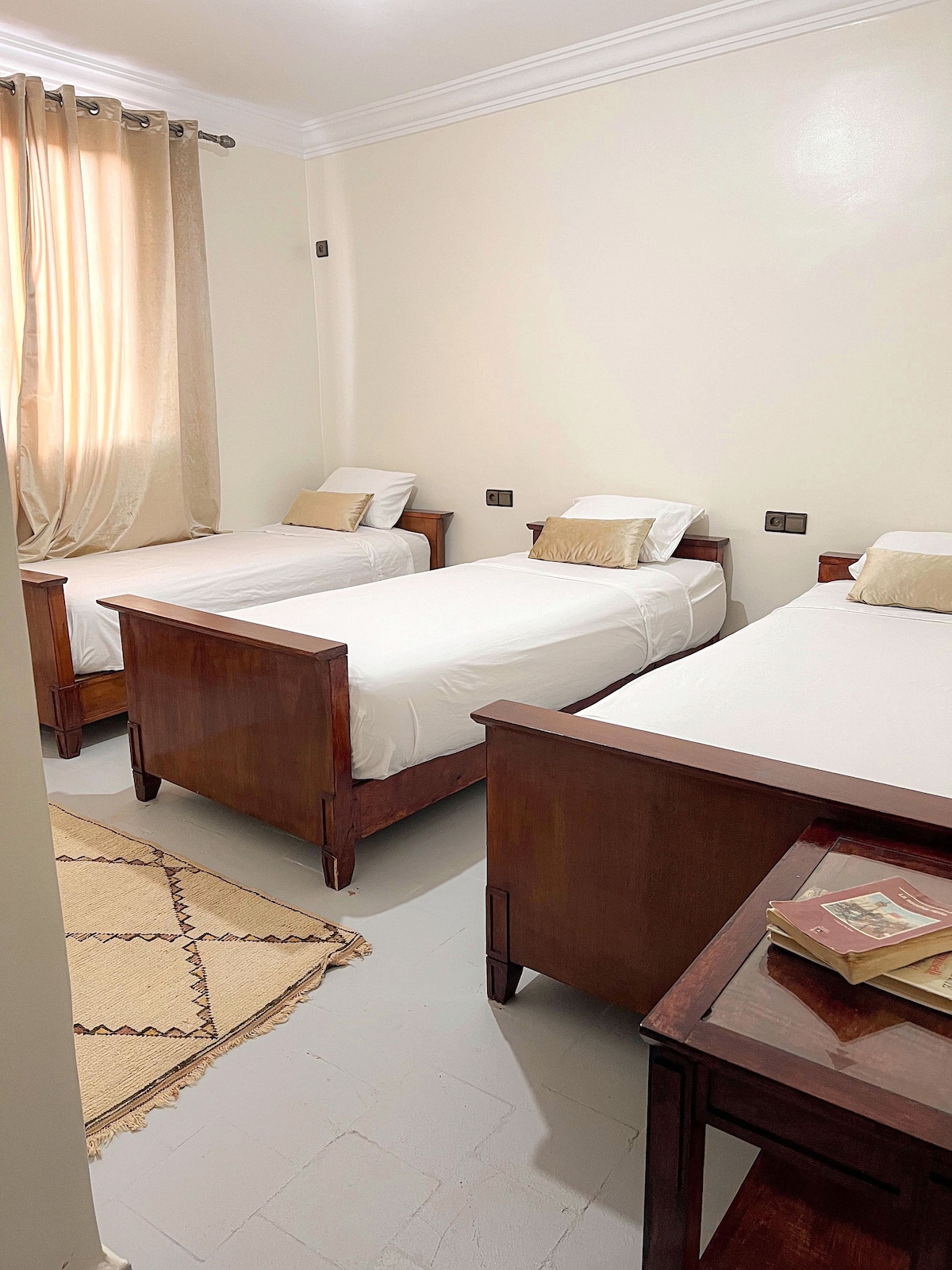 Explore our renovated 2-bedroom apartment in Tafraoute, Morocco. Enjoy stunning rooftop dining and breathtaking views. Stylish interior, fully equipped kitchen, and comfy beds guarantee comfort. Perfect for couples, families, or small groups seeking adventure, relaxation, or cultural experiences. Discover vibrant local culture and hiking trails or unwind in this picturesque gem. Create memories in our exceptional space. Book now for an unforgettable Tafraoute experience.