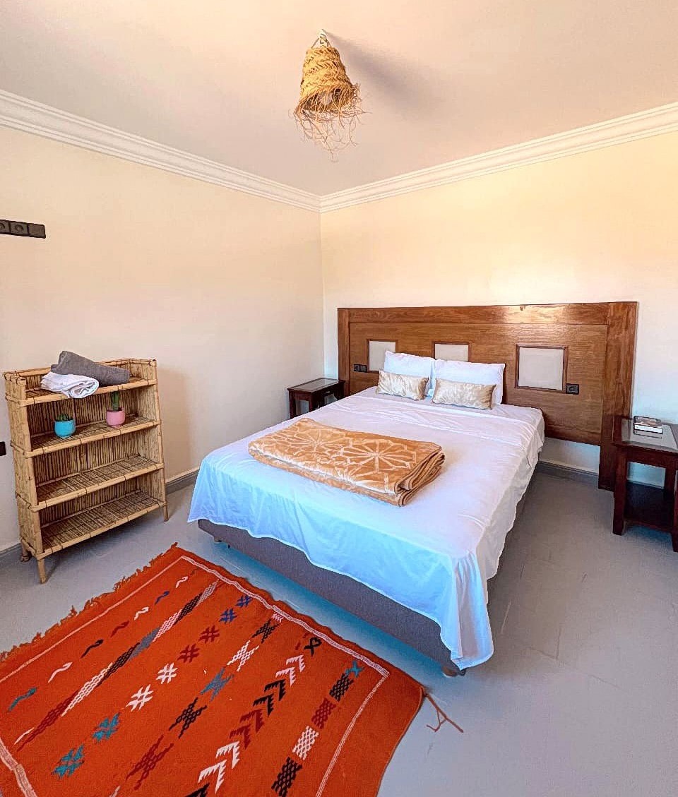Doté d'une terrasse bien exposée, l'appartement Ziyara est situé dans un quartier de Tafraout, à 300m du centre. Il mesure 30m2, avec une chambre, un petit séjour, coin cuisine avec les ustensiles nécessaire pour votre indépendance et une salle de d'eau, Au second étage, une grande terrasse ensoleillée, de 100m2, agréable pour déjeuner ou profiter du soleil, avec les transats à disposition. Autour, des paysages exceptionnel