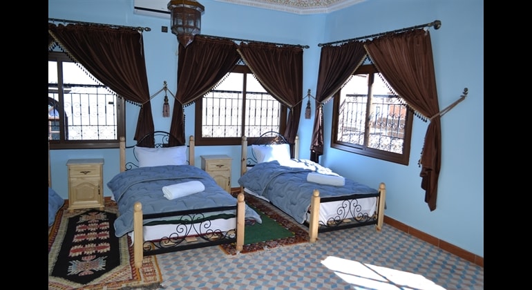 Gite d'étape pour tous les voyageurs ( motos, vélos, randonneurs, ...) avec plusieurs chambres. Une grande salle commune pour partager les repas. Pension complète traditionnelle marocaine. Possibilités de faire des excursions autour de notre gîte dans de magnifiques lieux naturels et préservés : Randonnées dans les gorges d'Attach. Visite du grenier d'Aoujgal Couchée du soleil sur l'Atlas.