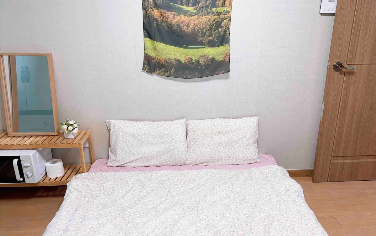 감성충만한 공간에서 좋은 추억으로 기억되길 바랍니다^-^ *퀸사이즈 매트리스가 제공됩니다 * (2023/11/30 업데이트) 잠시라도 편안히 쉬다갈 수 있는 공간이었으면 좋겠습니다•_• 입실하시는 방법은 셀프 체크인(도어락 비밀번호)이며 예약이 확정 된 후 어플 내 체크인 안내에서 자세한 사항(사진첨부)을 확인할 수 있습니다.