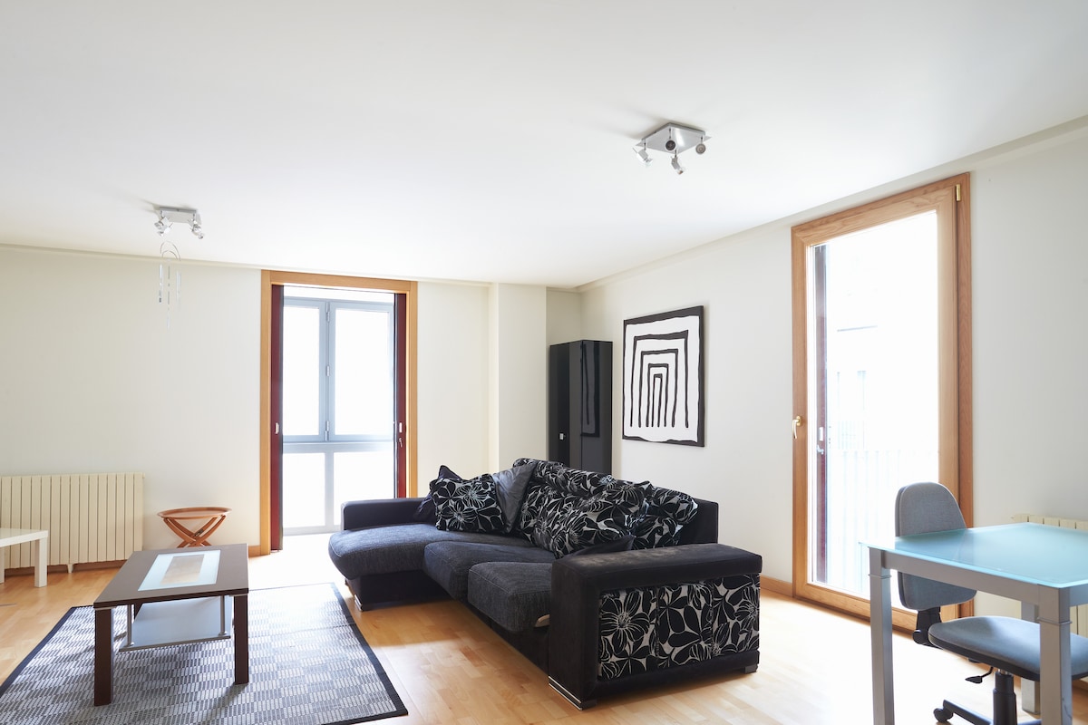 Apartamento muy céntrico a 5 minutos d la calle Laurel, en pleno centro logroñes. Se accede al apartamento directamente en el ascensor o puede subir andando un primer piso.Es un apartamento de espacio abierto y diseño con gusto. Tiene 3 habitaciones con lo básico,no hay que traer casi de nada. Reformado y especialmente para 6 huéspedes. Con 2 baños con lo más básico uno d ellos es baño privado de la habitación. Salón y cocina abierta. Wifi y Tv. Vistas al centro de la calle. Muy cerca d todo.