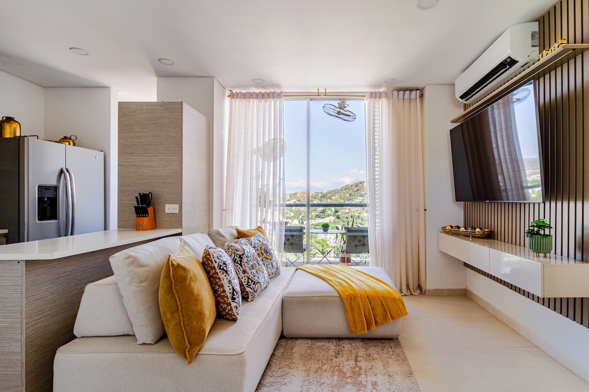 En este apartamento totalmente equipado escogimos cada elemento y diseñamos los espacios para que te relajes y disfrutes. Cuenta con cocina completa ✔ para que prepares delicias a tu gusto, wifi ✔, aires acondicionados ✔, cable ✔, zona de lavado ✔ y una terraza con hermosa vista al mar ✔. Podrás deleitarte con todas las amenidades que ofrece este fabuloso club de playa: jacuzzis ✔, saunas ✔, baños turcos ✔, piscinas ✔, restaurante bar ✔y kioskos de playa ✔ para que disfrutes el mar caribe.