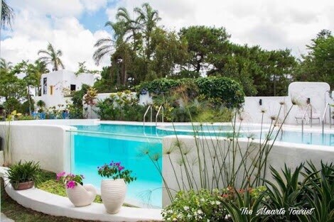 This is La Bella Lifestyle. Creating a wonderful charming location. This is a place to relax and be one with nature. Property has amenities that include a restaurant, a library you can check out different kinds of book here, a cafe, a mind and body shop. Attraction of the place is the community pool you find a glass pool. The place is strikingly beautiful you feel like you're being transported to Santorini.