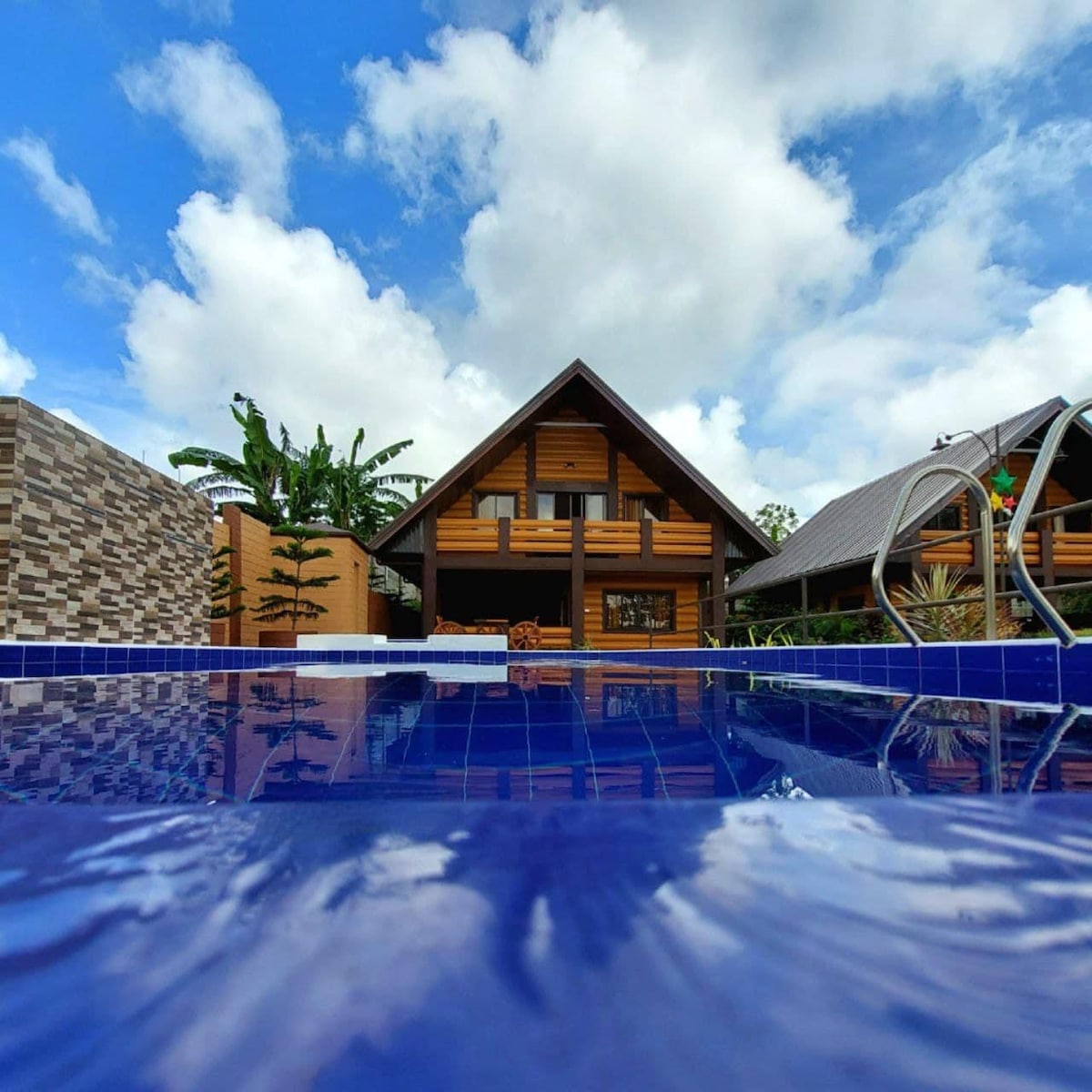 Nestled in the heart of Tagaytay, our cozy modern A-frame cabin offers you the perfect blend of comforting warmth and sophisticated design. (Just 3-mins away from Tagaytay Picnic Grove) This cabin is fully equipped with all the comforts of a home, including an indoor and outdoor kitchen, a 6-seater dining area, a cozy sofa and reading area, masters bedroom, and a loft bedroom. An exclusive pool, cozy lounge area with bonfire, and an outdoor viewing deck also awaits you in our cabin.