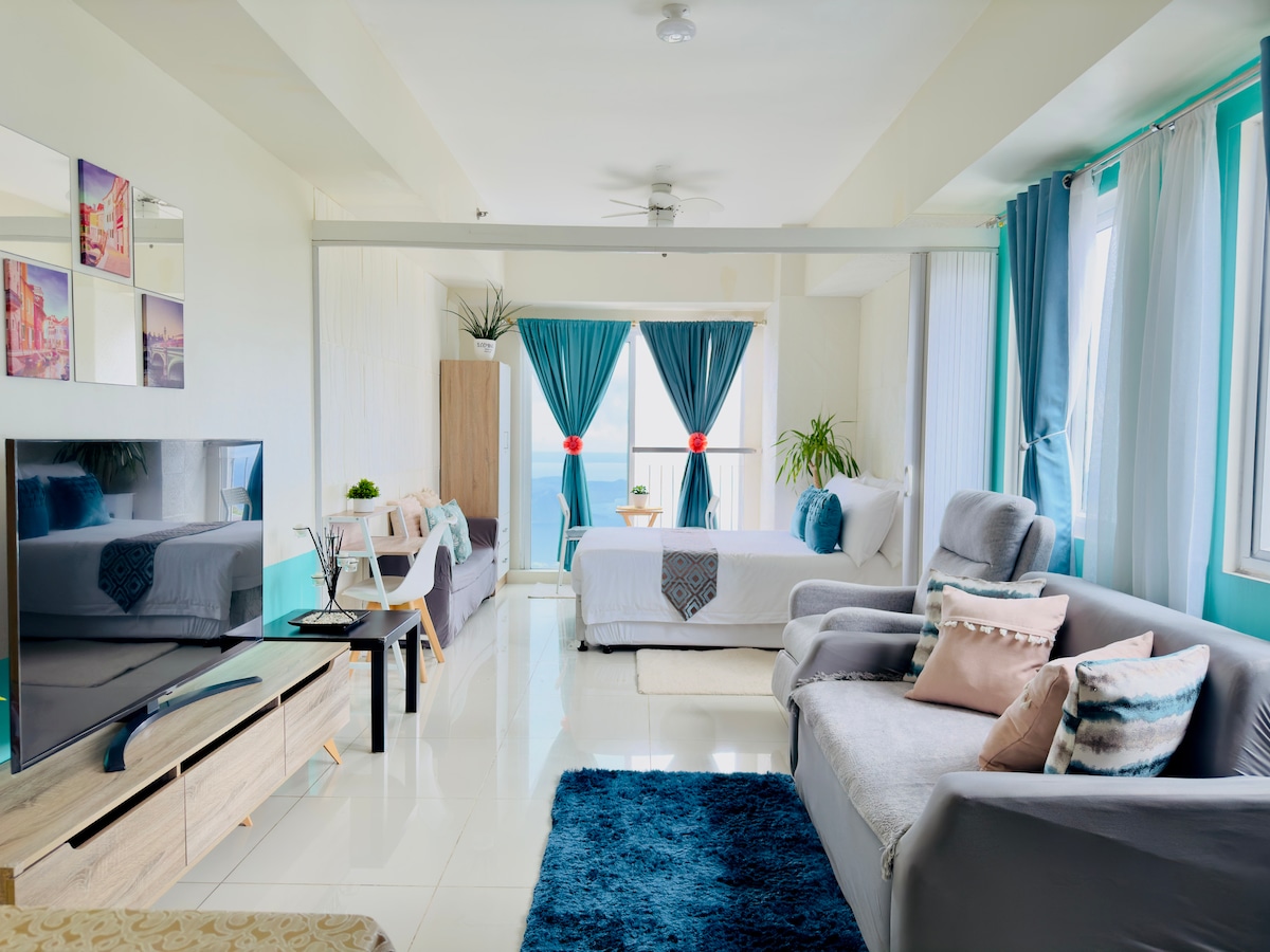 My condo is a 34 sqm studio type unit located near Sky Ranch, and to the best restaurants in the city. It has a glass wall with a perfect view of Taal Lake and Volcano. Unit rental comes with a wifi (25 mbps), tv with netflix, home theater (sound bar), aircon, basic amenities (beddings, towels, shampoo, conditioner, soap, toothpaste, toothbrush, lotion, slippers), shower water heater and free parking space near the main lobby entrance. Maximum nr of guests allowed is 4 including infants.