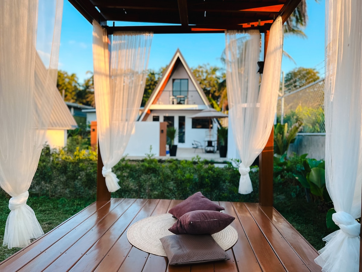 Welcome to Nordic A frame villa ! 🏡 Retreat to the A-frame villa convenientlyNestled at the border of Tagaytay and Silang . Wake up to stunning surroundings, with an IG-worthy garden and elegant interior decor that is sure to impress. Immerse yourself in luxurious amenities like the private pool and jacuzzi, perfect for families and groups. Heated pool and jacuzzi are available with additional fee. Wi-Fi powered by Starlink High-Speed Internet.