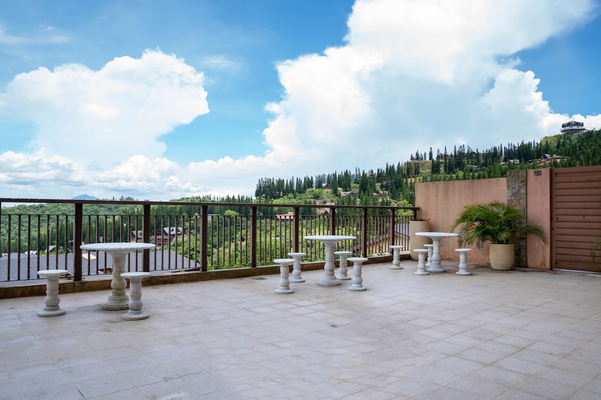 This is a condo/hotel unit of a Swiss Inspired design where you can really enjoy and relax surrounded by the mountain area with lots of pine trees (perfuming air) and fresh air.,quiet and peaceful with a foggy ambiance at night..can enjoy walking around.and also there is a swimming pool and gym to enjoy...Restaurant and coffee shop at the main entrance of Crosswind..