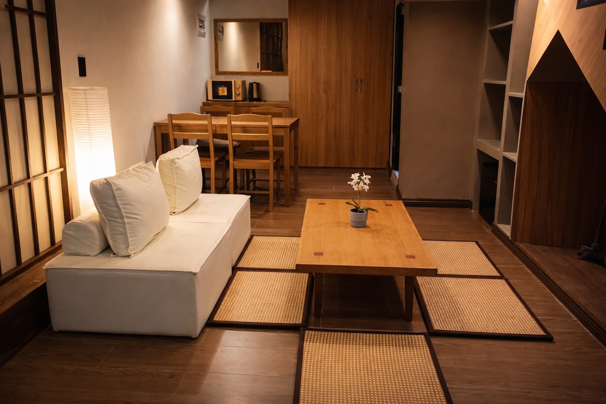 The Zenwood Loft | Japandi Living Near Picnic Grove offers a calm and minimalist retreat inspired by Japanese and Scandinavian design. This thoughtfully styled unit sleeps up to 6 guests and features a cozy layout, soothing tones, and a Netflix-ready TV. Located just a short walk from Picnic Grove, with cafés and food stalls within the building. 24/7 staff on-site for a smooth and comfortable stay. Breakfast from Libro Espresso available upon advance request.