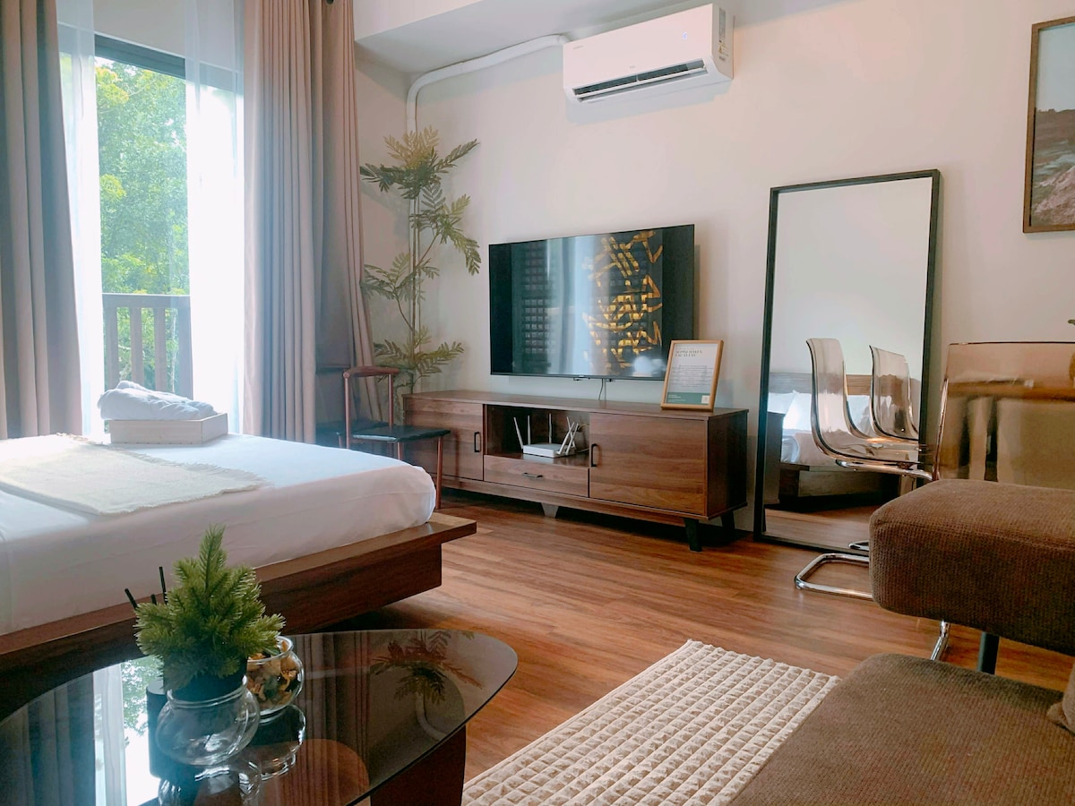 Unwind and relax in this newly furnished Swiss-style condominium in the clouds. Surrounded by 35k+ pine trees, this unit has cool weather all year round. It's the perfect place to enjoy the peace and quiet of nature. The unit is fully equipped with everything you need for a comfortable stay, including free toiletries, bath slippers, towels, WiFi, TV, microwave, rice cooker, stove, and utensils. The unit is located on the ground, making it easy for seniors or people with mobility concerns or pet.