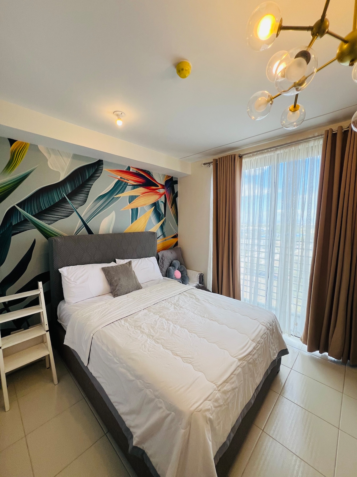 Stay in the center of the action in this one-of-a-kind place. Near to everything that you need. A very nice place to stay, hangout or just chill. * Aircondition * 65-inch TV * Soundbar Speakers w/ Subwoofer * WiFi * Air Purifier * Bed Size Double 54x75 * Pull-out Bed size twin KITCHEN * LG Refrigerator 7cuft. * Induction Cooker * Microwave Oven * Electric Kettle Pots & Pans * Kitchenwares & Utensils * Dinnerware BATHROOM * Single Point Water Heater * Fully Automatic Washing Machine