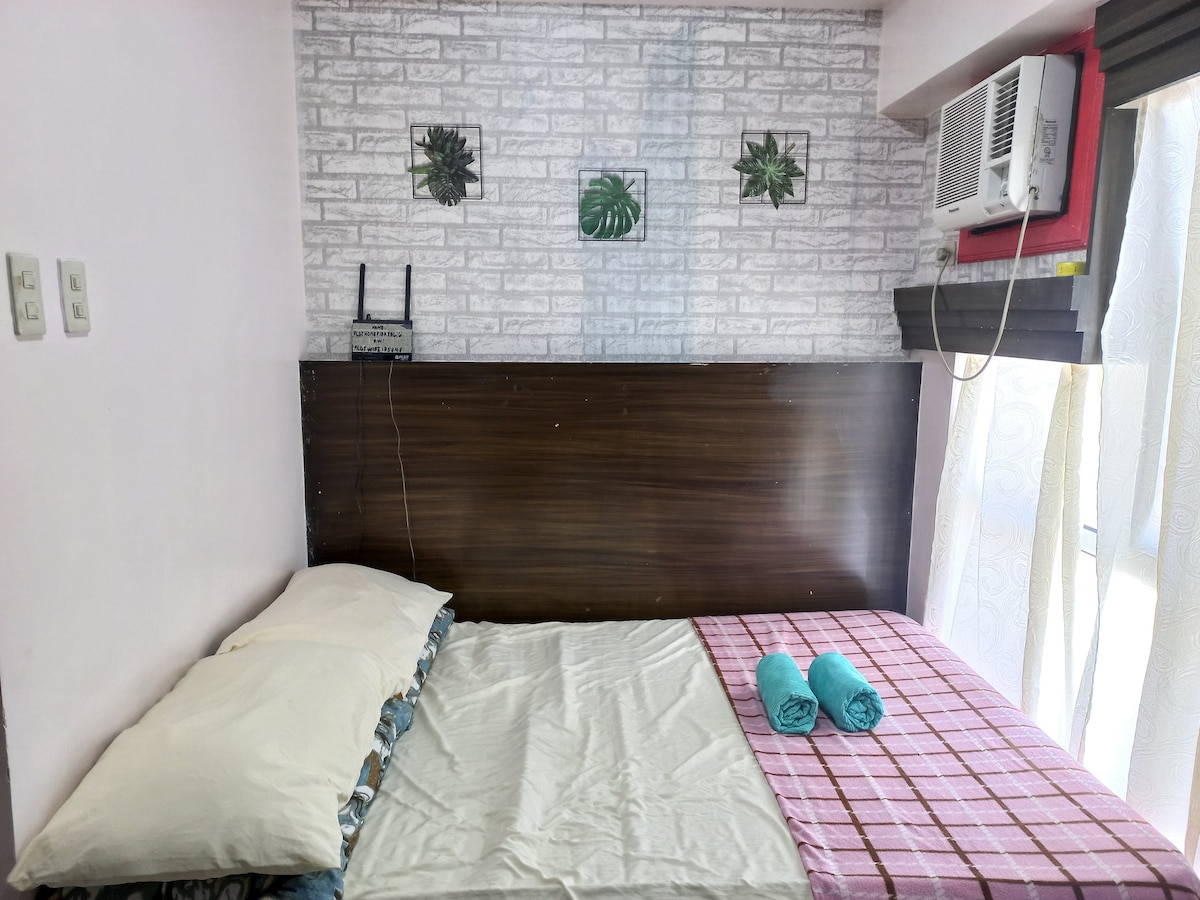 We want to share the tranquility of our space to other like minded people looking for a break from the fast paced city life. Our home is a 1 bedroom 50sqm unit with an expansive balcony - more spacious than others in the same price range. It's ideal for a couple or a family of 2 adults and 1 child. Use of swimming pool - see details provided in the listing description. Parking NOT included but can be provided for P250/night. Late check-in fee after 4PM. Simplicity. Peace. Uncomplicated.