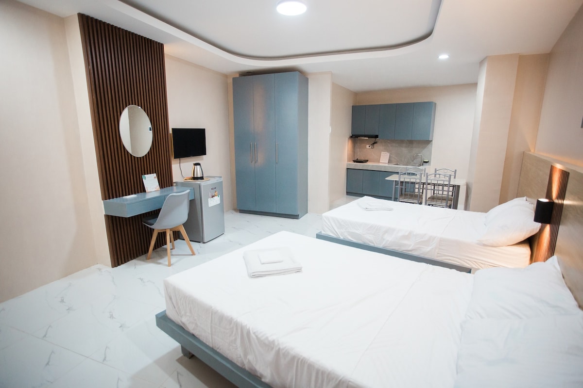 Welcome to our brand-new studio-style Resort.Our room available for weekly and monthly rent also with discount. 1.5 km(4mins ride) from Alona beach. 1.2 km from the airport. 1.1 km from Alturas Panglao supermarket. 0.1 km from a Koren restaurant. 0.6 km from a 711 convenience store. 0.7 km from a cafe with a shared work area. 1 km from Diving King Dive Resort.
