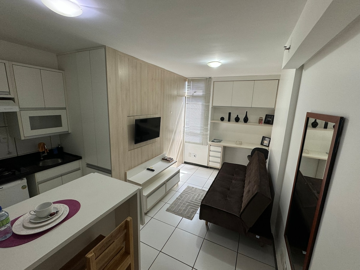 Flat na Cobertura do Ed. Fusion Work Live, com ótima localização, no Setor Hoteleiro Norte, bem Próximo ao Conjunto Nacional. O apartamento é diferenciado, contando com 1 cama de casal e 1 sofá cama, roupa de cama e banho, TV, wi-fi, ar-condicionado, mesa para refeição, mesa para trabalho, armários, pequena cozinha, geladeira, chaleira, sanduicheira, air fryer, fogão de indução, panelas, pratos e talheres. O ar-condicionado está localizado no corredor, no quarto adicionamos um climatizaddor.