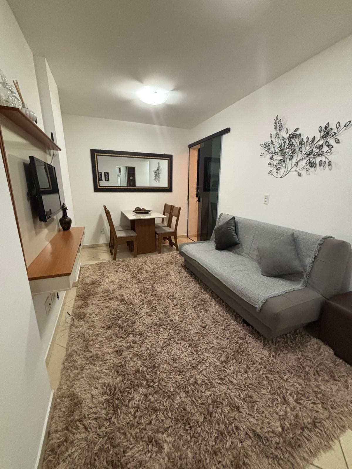 Sala com televisão e sofá-cama (para casal) . Mesa para 4 pessoas, contendo uma pequena varanda com vista para o Parque de Águas Claras. Cozinha com geladeira, microondas, armários e uma área de serviço, contendo máquina de lavar, tanque, varal e uma tábua de passar roupas. 1 banheiro social. 2 quartos, ambos com cama de casal e armários. Tem WI-FI e 1 vaga de garagem coberta. Área comum contém: recepção, funcionários 24h, quadra esportiva, brinquedos e câmeras de segurança. Próximo a tudo!