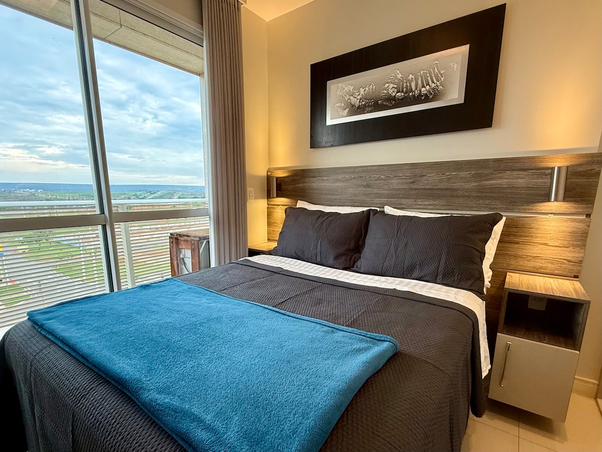 Leve toda a família para um condomínio com cara de clube, com muito espaço para se divertir nas piscinas aquecidas, coberta e piscina praia. Temos uma vaga de garagem coberta. Apartamento com 2 quartos sendo uma suíte com ar condicionado e mais um banheiro social. São duas camas de casal e sala com bicama e Blackout. Podem deixar as malas e aguardar na sala de espera ou ir utilizando a área comum antes do check-in. Bairro: Águas Claras, cidade nova segura e com muitas opções de restaurantes