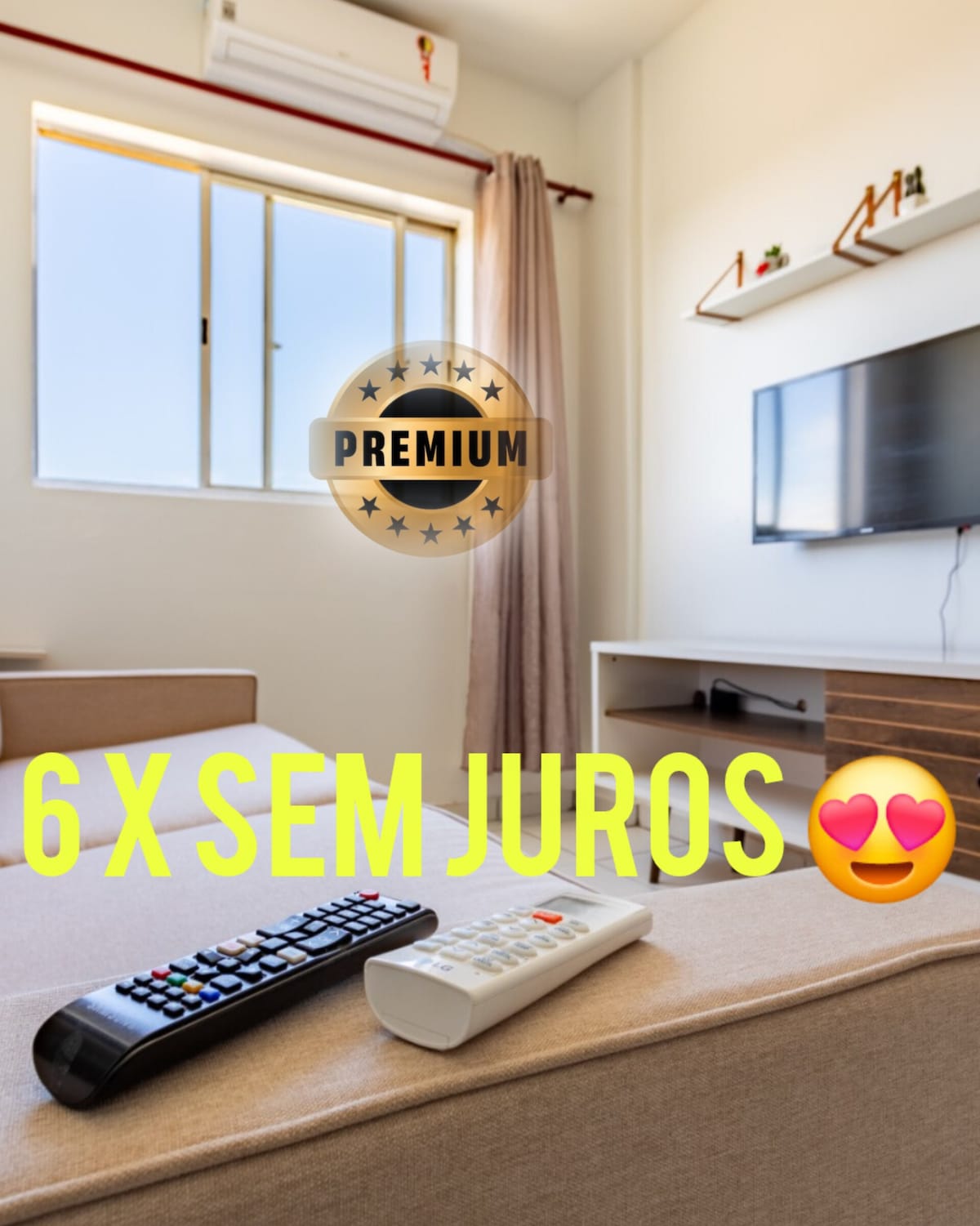 Apartamento recém mobiliado, acabamos de instalar AR condicionado, é completo, com cozinha ampla e completa, suíte espaçosa com cama confortável, banheiro amplo e sala aconchegante com sofá cama casal e cortinas blackout. Condomínio completo, com espaço de lazer com piscina aquecida, churrasqueiras, academia e sauna.