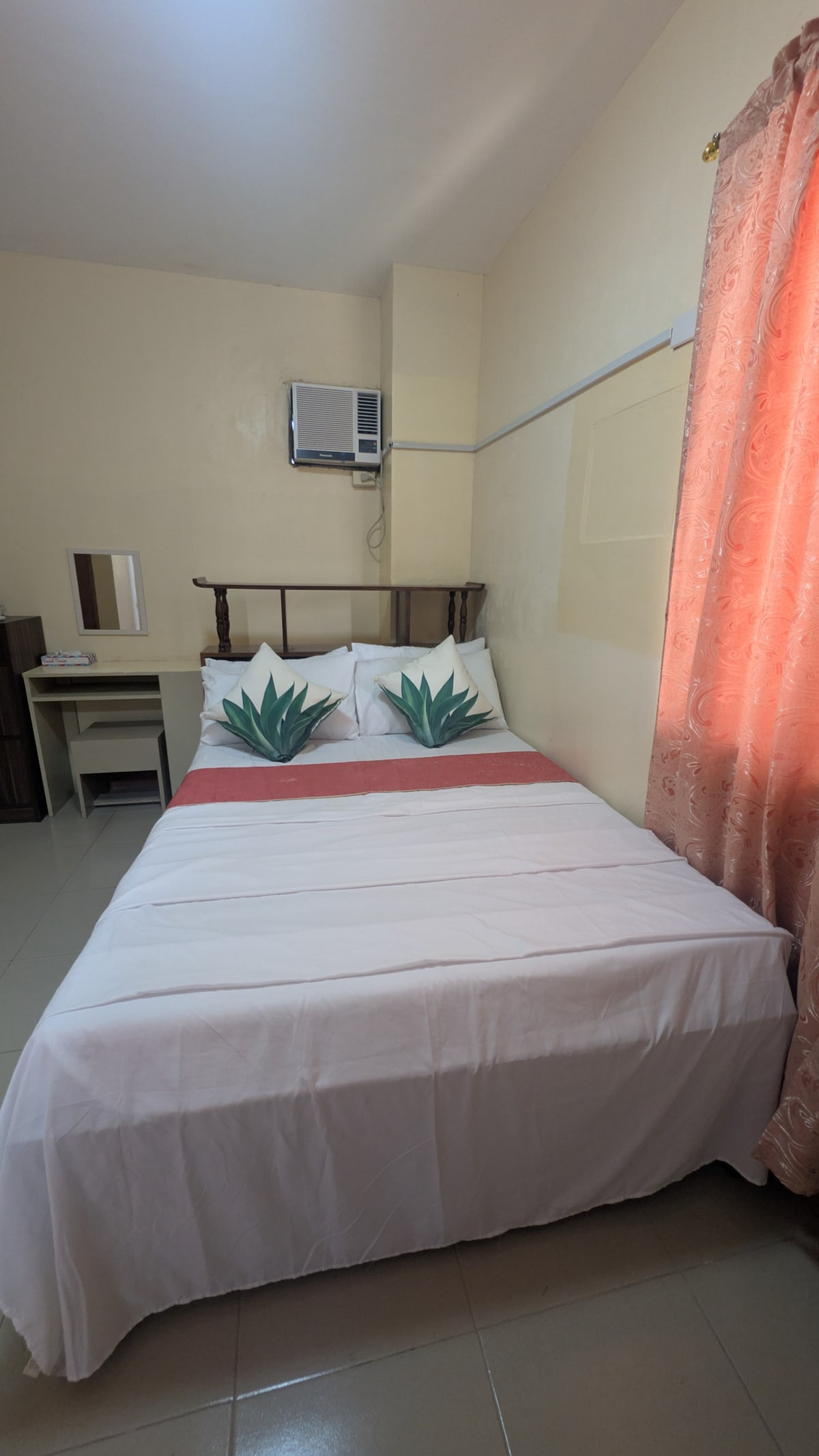 Make some memories at this unique and family oriented Guest house in Panabo City Its a 2 story bldg.This room is the 1st door going to 2ndflr.Good for 2pax with the following Room ammenities: 🌼Wifi 🌼 Aircon(split type) 🌼TV(youtube&netflix only) 🌼small bluetooth speaker with mic. 🌼 ref 🌼dining utensils 🌼cr&sink inside the room 🌼 electric kettle 🌼 ricecooker 🌼complimemtary bottled water,coffe,creamier,sugar 🌼Guest kit(hotel shampoo,toothbrush,soap,toiletpaper) 🌼 beddings&towel