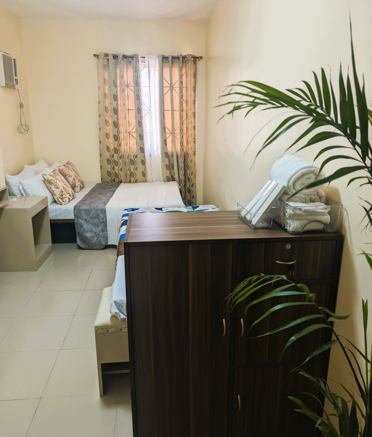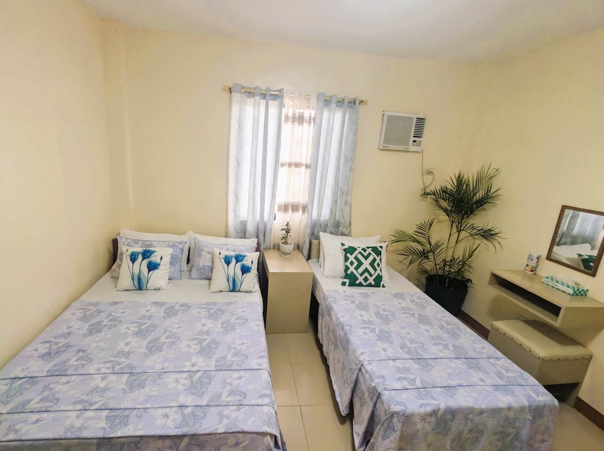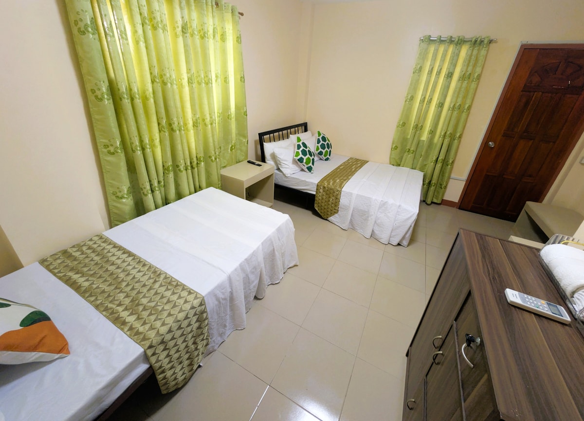 Studio type room(1st floor) good for 4pax twin bed(double size) ✔️wifi ✔️tv ✔️ref ✔️ricecooker ✔️aircondition ✔️electric kittle ✔️sink&cr inside ✔️Guest kit(toothbrush,paste,hotelsoap,shampoo&tissue) ✔️free use of bedsheets&towels ✔️can cook ur meals(outside room) ✔️basic kitchen utensils ✔️24/7 cctv(outdoors only) ✔️parking ✔️along main road,accessible to Market,mall,church,hospitals,Panabo cityhall&Panabo city multipurpose gym,&Cagangohan seawall.(1 ride only) ✔️sari2x store within the bldg.