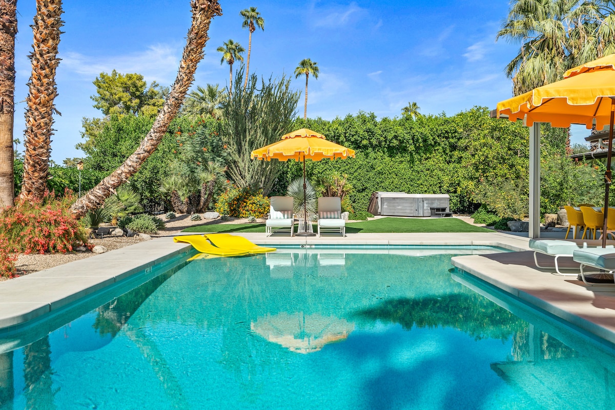 双棕榈中世纪风格,带私人泳池/水疗和景观