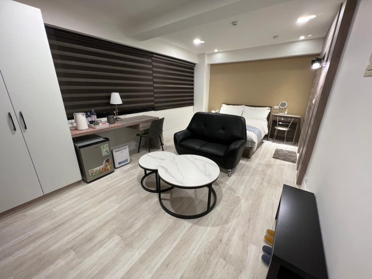 本房源經過全面翻修(2021年底),位於東海夜市附近安靜的街區當中,步行5分鐘即可抵達便利商店、餐廳。房源的外面可停機車,房源的附近有嘟嘟房停車場(步行5分鐘距離)如果您白天想參觀東海大學,晚上想逛東海夜市吃台灣雞排,本房源會是您的好選擇! 空間介紹 房間寬敞明亮,配有雙人床、梳妝台、擴香瓶、吹風機、空氣清淨機、沐浴用品、毛巾、小米智慧電視(提供Netflix)、Wifi、延長線、充電頭、小茶几、迷你冰箱、沙發、熱水壺、礦泉水、咖啡、茶包。每一獨立房間接搭配電子鎖,可安心入住。一樓大廳旁有提供自助洗衣及咖啡販售的服務。 房內設施 -獨立入口電子鎖(提供門禁密碼) -Wifi -小米智慧電視(提供Netflix) -空氣清淨機 -110V延長線 -行動電話充電頭 -Panasonic吹風機 -Pure Life擴香瓶 -乾淨的浴室,淋浴設備 -沙發、小茶几 -迷你冰箱 -Tatung熱水壺 -熱水保溫瓶 房客使用權限 -入住時間為下午3點,退房時間為上午11點 -每一間房限入住2位成人,如有超過可事先討論 -房內禁止吸菸