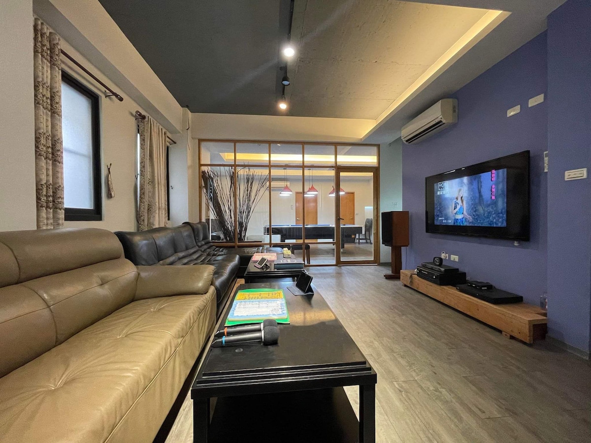 交通便利、位置絕佳、鬧中取靜、生活機能極好,風格獨特、環境優美、多座大型公園鄰近,四周綠意盎然... 備有免費電動車充電槍 位於逢甲商圈、七期商圈,水湳經貿園區正中心,至逢甲夜市步行約10分鐘, 附近美食、商店林立,還有著名伴手禮店。 我們是獨棟的6樓電梯民宿,整棟分層出租,作為與家人或一幫好友一起遊覽中台灣的最佳住宿安排, 房源都用木質地板高檔舒適,賓客使用極具方便,每層樓都有大客廳,連結大片玻璃窗和式平台,視野好可放鬆休閒看夜景。 還有很大的中島餐桌可舒服用餐、喝咖啡。廚房也備有基本廚具和餐具,提供電磁爐、鍋具、碗盤、冰箱、熱水壺等….,可簡單加熱餐點。 民宿坐落於台中市中心,便捷的交通可到週邊城鎮旅遊;近74快速道路,方便連接高速公路到鄰近縣市的鹿港、苗栗景點,或可沿著海岸線玩遍高美濕地及彰化海濱浪漫的海天一色,或可欣賞大坑東勢谷關開闊的山景,讓我們做為您在中台灣旅行的最佳停靠站。