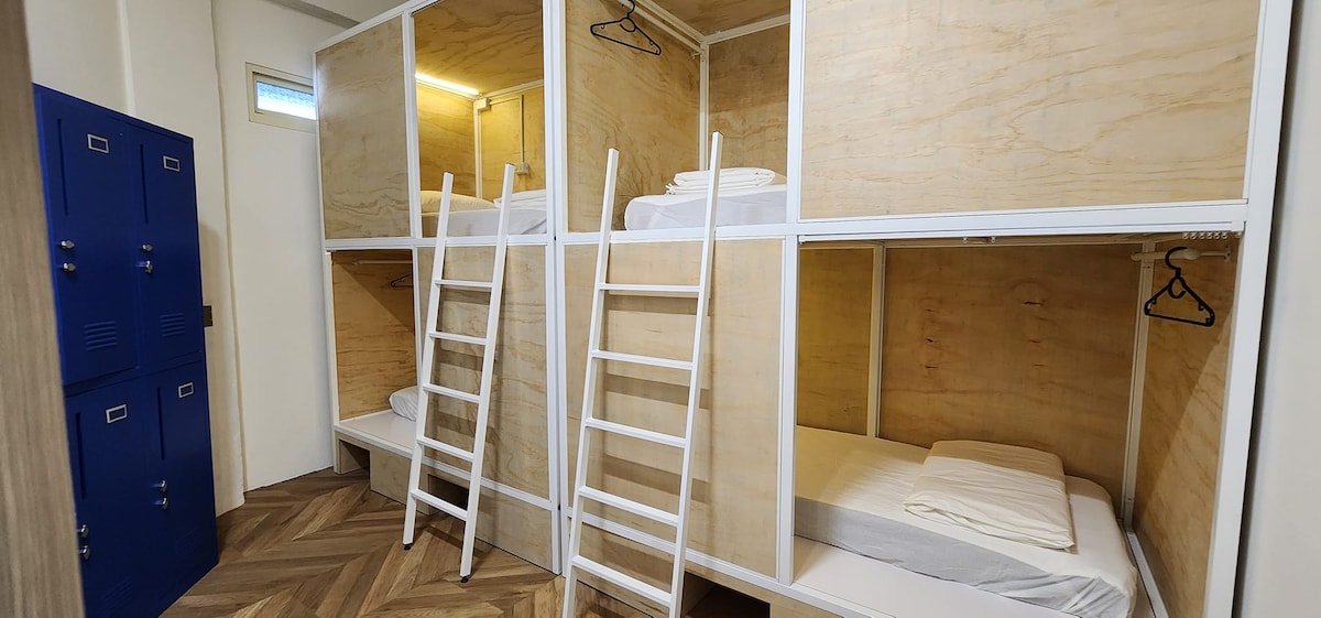 【四人混合背包房/四人朋友房】 擁有自己獨立的小空間 四張單人床的上下舖(床墊90×200公分/厚度17公分) 房間用品設備:置物櫃 / 冷暖氣機 / 浴巾 /掛衣架 使用共用衛浴設備 入住者須年滿18歲,7~17歲者入住需有成人陪同 恕不招待7歲以下孩童想跟好友分享這間獨特房源的相片。