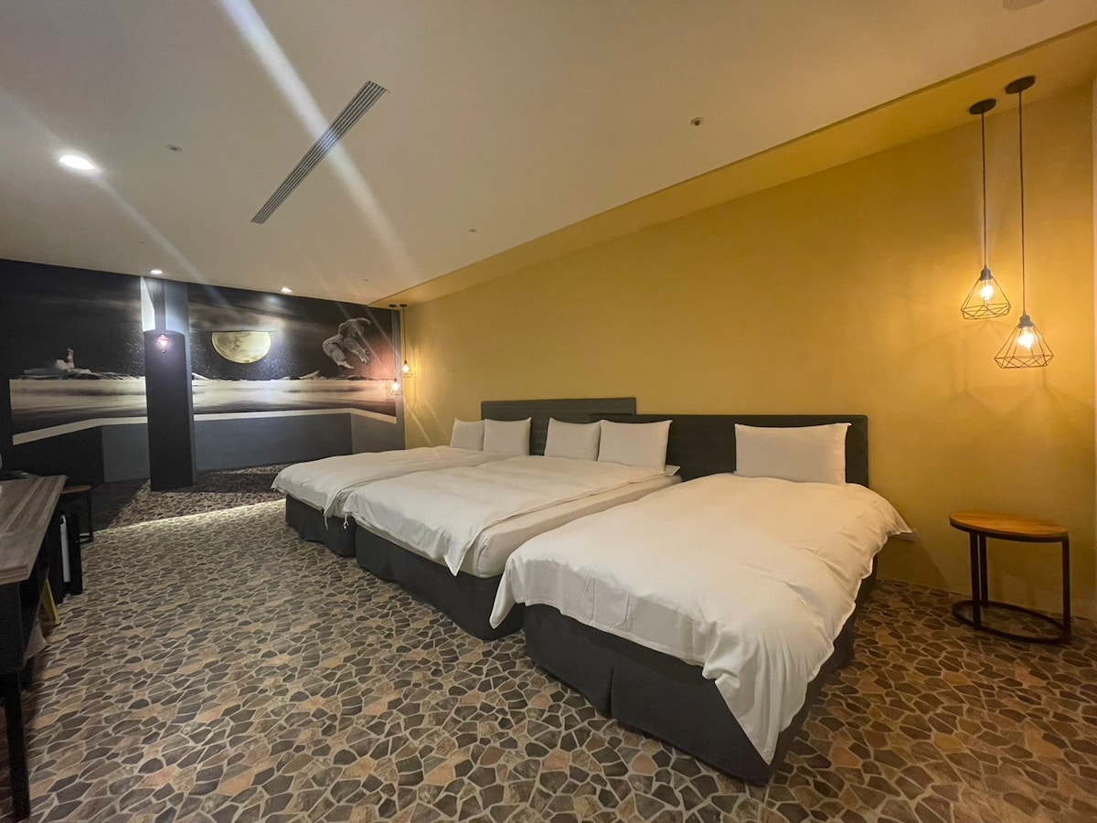 親子四人房-乾溼分離衛浴/皆有對外窗/毗鄰勤美綠園道.草悟道(續住有優惠)/美術.科博館/審計新村