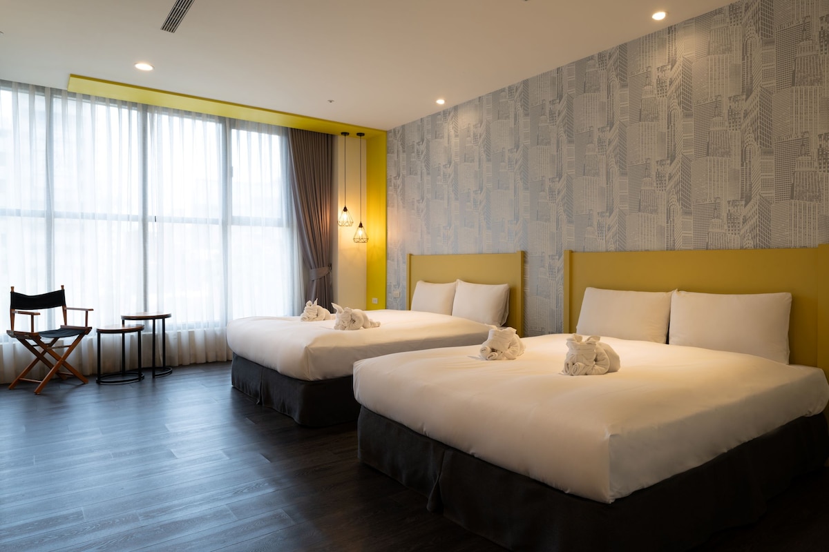親子四人房-乾溼分離衛浴/皆有對外窗/毗鄰勤美綠園道.草悟道(續住有優惠)/美術.科博館/審計新村