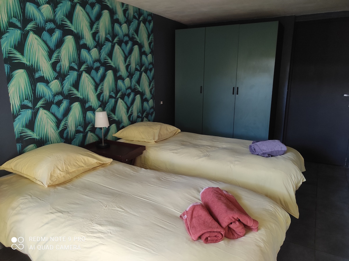 Charmante maisonnette avec terrasse privée et entrée individuelle. Idéal pour 1-4 personnes, cosy et élégante offre une mezzanine avec un lit double et un canapé-lit confortable. À seulement 5 km de l’aéroport de Mérignac (transfert possible), elle est idéale pour explorer Bordeaux (15 min en tram), ses célèbres vignobles et plages océaniques. Arrêt de bus - 2 min, tram - 15 min à pied. Profitez d’un petit-déjeuner léger offert, d’un cadre calme et verdoyant, et d’un parking gratuit dans la rue.