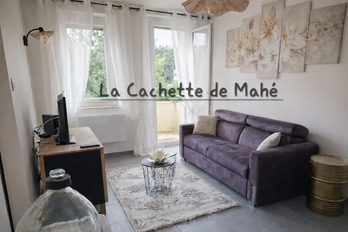 La cachette de Mahé vous propose une maison de 50m2 avec terrasse et jardin clos. Une cuisine entièrement équipée avec lave vaisselle et lave-linge Une chambre avec dressing Un salon avec canapé convertible donnant sur le jardin Une salle d'eau et WC séparé Idéalement située dans quartier résidentiel proche de toutes les commodités (supermarché, pharmacie, boulangerie...) À deux pas de la viarhona et de la dolce via Stationnement devant la maison Sur demande lit parapluie pour bébé