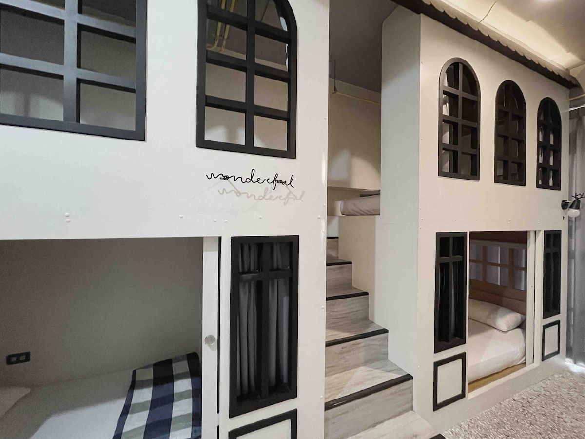 🫶衛浴獨立使用,在房間內🫶 有四張德泰彈簧床的上下舖床位房型, 不管是家庭旅遊或著朋友出遊,一人一格的床位,也能保有私人的隱私,每個床位裡面有獨立的電燈以及插座,你可以不打擾家人或朋友的作息自在的玩手機或看書。 另外你也可以在我們的一樓公共空間裡面休息、享受在台南的放空之旅。 房間內有分離式冷氣、沐浴乳以及洗髮乳、吹風機、四條尺寸為78*35公分的毛巾、為了鼓勵環保我們不另外提供一次性的備品,請務必自行攜帶慣用備品唷❤️