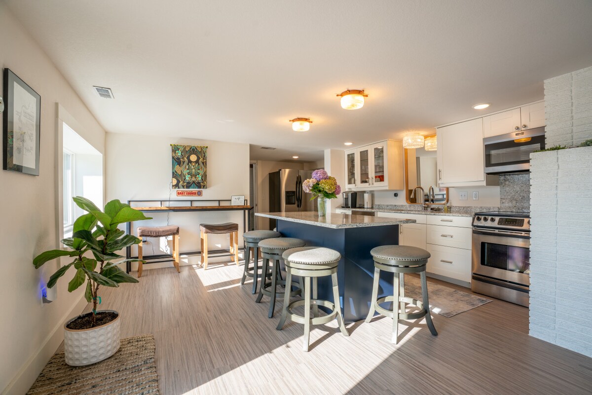 This newly remodeled, conveniently located house is so comfortable that you won't want to go home. Memory foam beds in every room provide restful sleep and the 65 inch TV is perfect for watching your favorite shows or games. Enjoy the spacious front and back porch with friends and family. Off street parking, fully equipped kitchen, comfy patio furniture, coffee bar, spotless rooms, washer and dryer and unique artwork are just a few of the things that will make your stay relaxing and memorable.