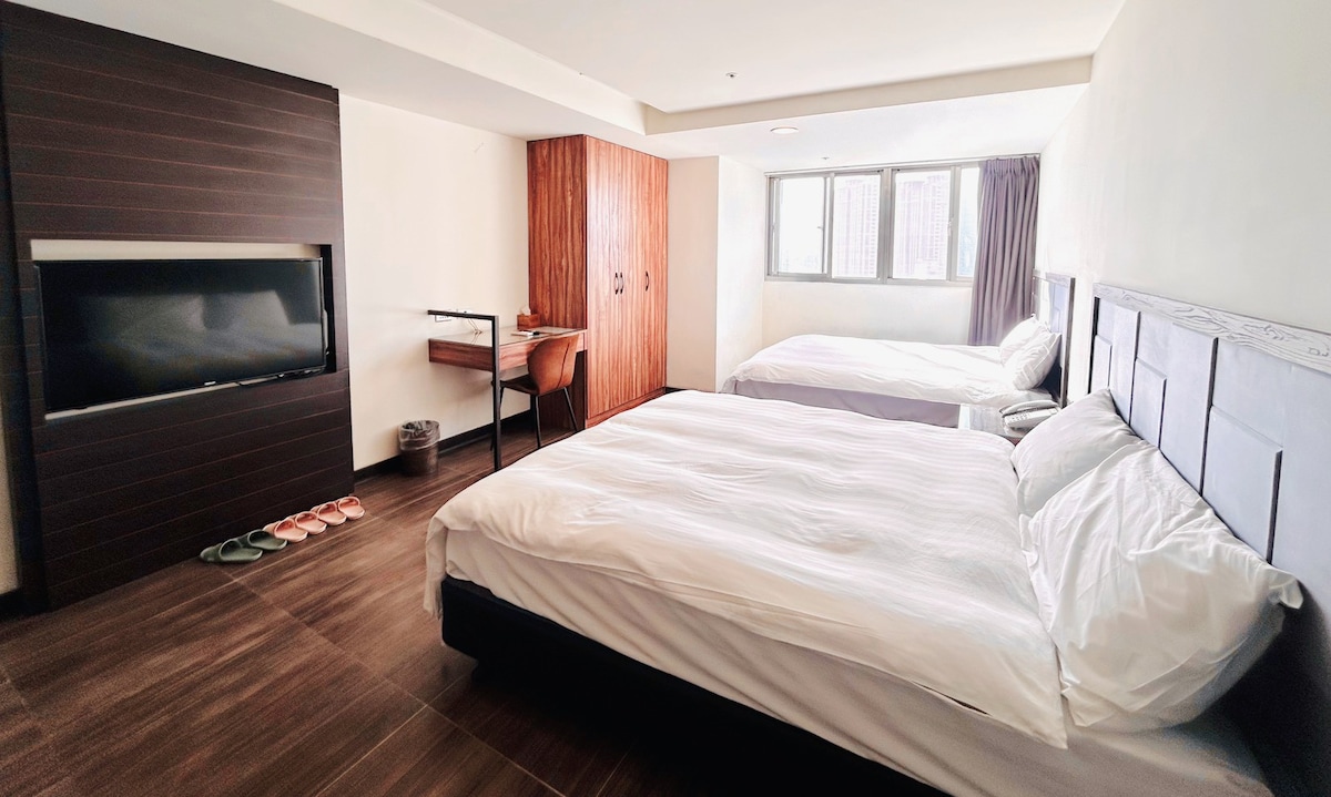 西門捷運2分鐘-明亮寬敞浴缸4-5人房型-24h櫃台