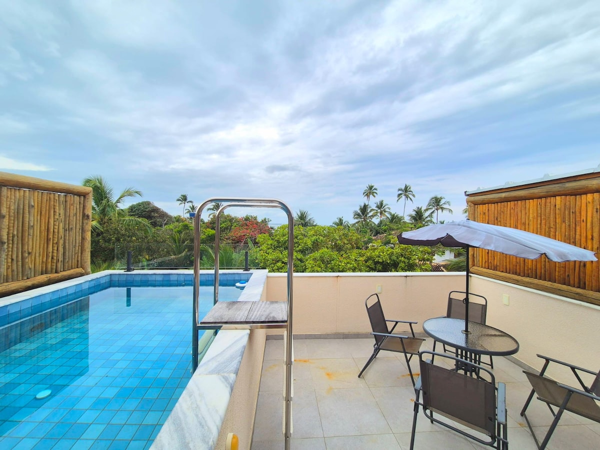Apartamento com 3 suites na praia de Taipu de Fora. Península de Maraú, há poucos passos do mar e 2 minutos a pé até as famosas piscinas naturais ! Com 3 suítes, sala grande toda em vidro com cortinas e ar condicionado 24 mil btus de frente pro mar, piso todo em mármore e granito, tem terraço com vista mar também ! Pra pessoas exigentes !! Muita varanda. Camas queen nas 3 suites, ar tb ! Cozinha toda equipada e completa ! Rua muito tranquila e segura ! Decoração toda eu trouxe de Bali !!
