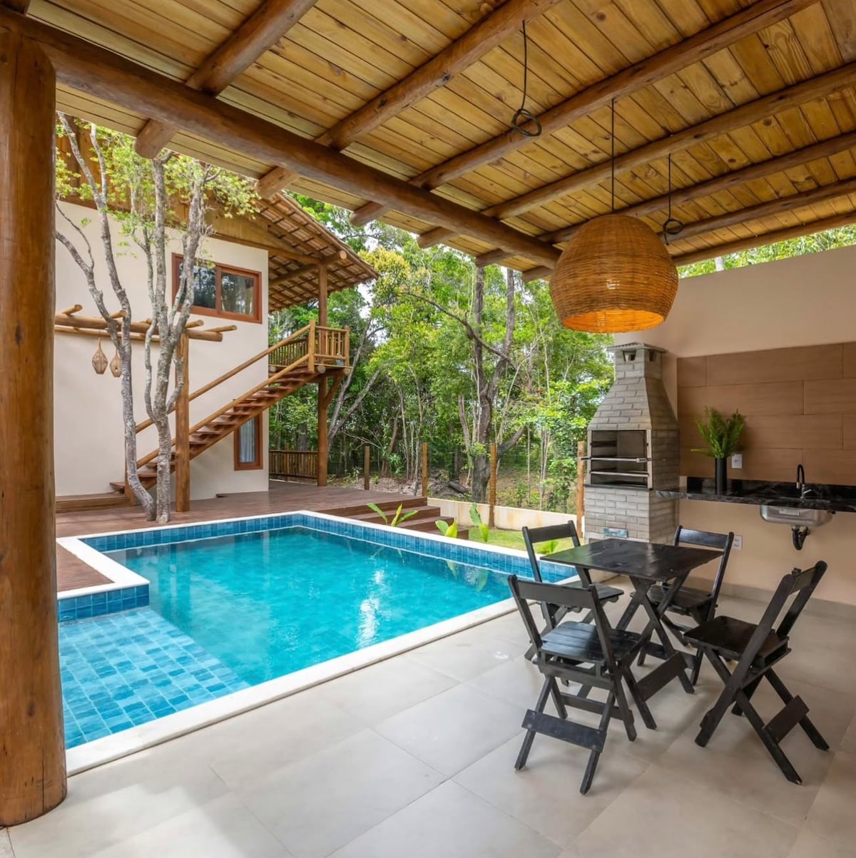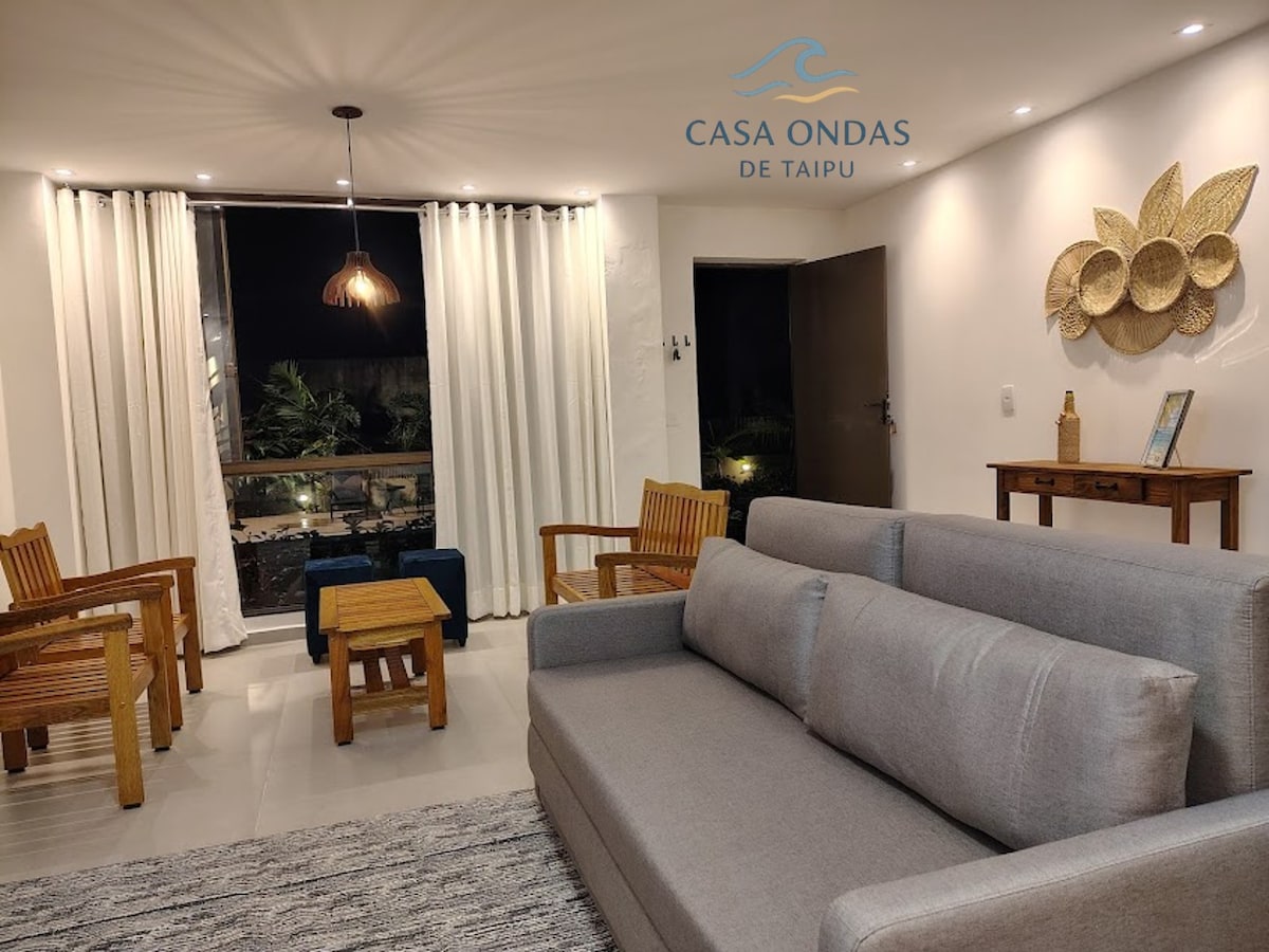 Casa com 3 suites na praia de Taipu de Fora. Península de Maraú, há poucos passos do mar e 2 minutos a pé até as famosas piscinas naturais ! Com 3 suítes, sala grande toda em vidro com cortinas e ar condicionado 24 mil btus de frente pro mar, piso todo em mármore e granito, tem terraço com vista mar também ! Pra pessoas exigentes !! Muita varanda. Camas queen nas 3 suites, ar tb ! Cozinha toda equipada e completa ! Rua muito tranquila e segura ! Decoração toda eu trouxe de Bali !!