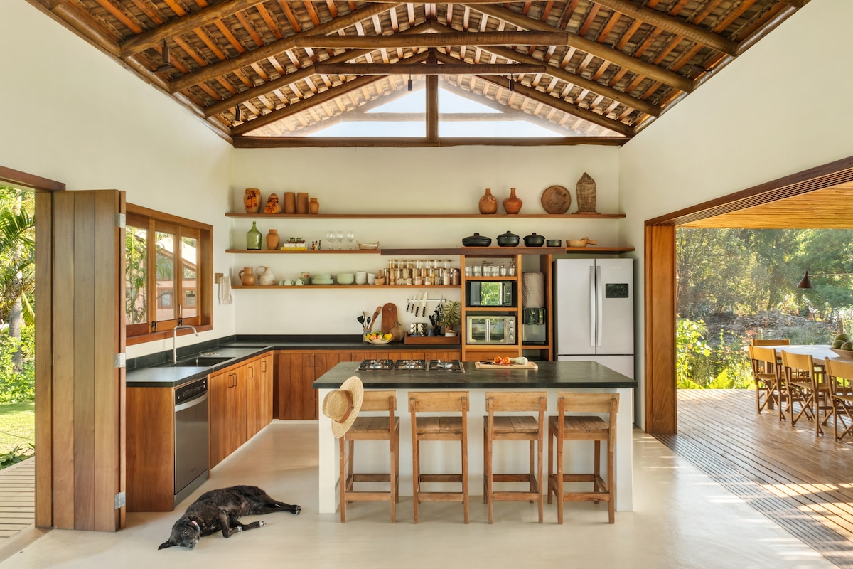 A CasaZen Bahia fica muito perto da praia (150m) e da vila (250m). Você vai amar o conforto em meio a exuberante natureza. Nossa casa tem quartos climatizados e banheiro privativo, camas muito confortáveis (2 queen size e 1 de solteiro) e cozinha completa. É um lugar tranquilo e aconchegante com jardim arborizado e gramado, pergolado de descanso, ducha externa e garagem coberta e fechada. É a sua casa na Bahia!