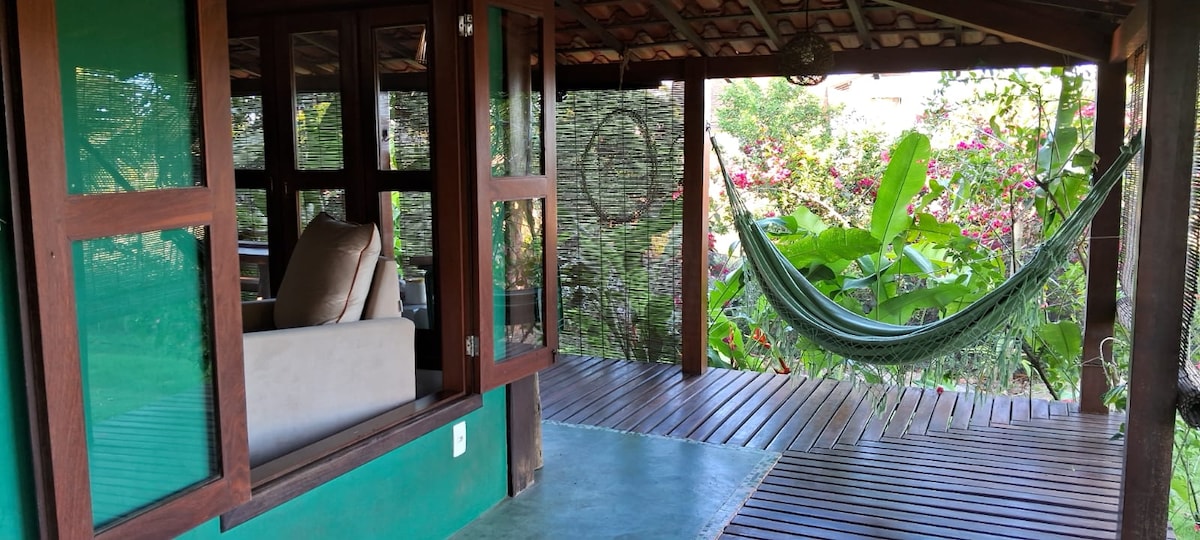 Eco VILA is located 80 meters from Taipu de Fora natural pools. The accommodation has a comfortable air-conditioned suite with rustic decor, Wifi, TV with Netflix and Globo Play included. Bed with mosquito net and bed cloth. Balcony with hammock and lots of green area. Kitchen with refrigerator, microwave, blender and kitchenware. Large bathroom, hot shower and a strong external shower with natural water.