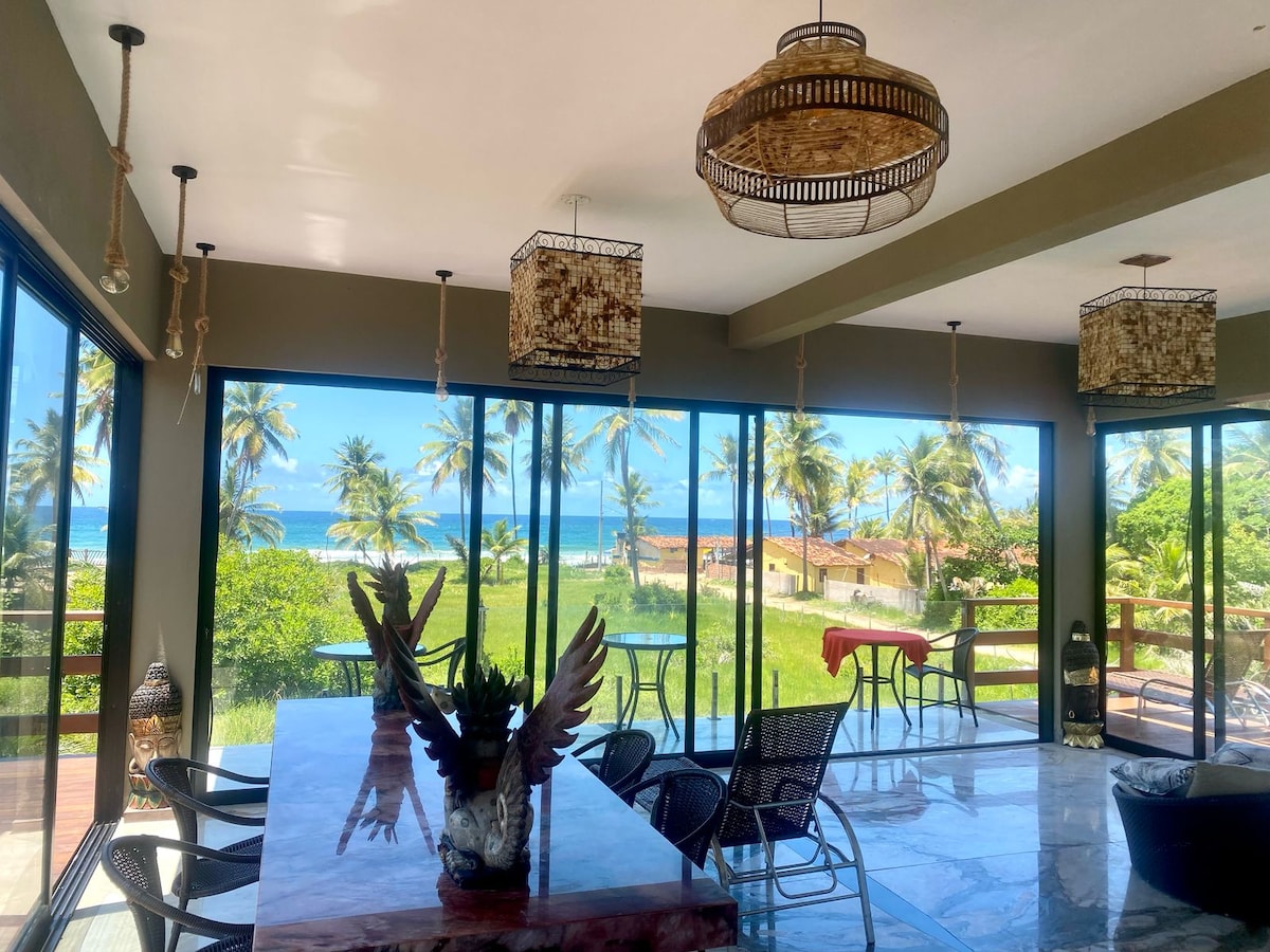 Apartamento com 3 suites na praia de Taipu de Fora. Península de Maraú, há poucos passos do mar e 2 minutos a pé até as famosas piscinas naturais ! Com 3 suítes, sala grande toda em vidro com cortinas e ar condicionado 24 mil btus de frente pro mar, piso todo em mármore e granito, tem terraço com vista mar também ! Pra pessoas exigentes !! Muita varanda. Camas queen nas 3 suites, ar tb ! Cozinha toda equipada e completa ! Rua muito tranquila e segura ! Decoração toda eu trouxe de Bali !!