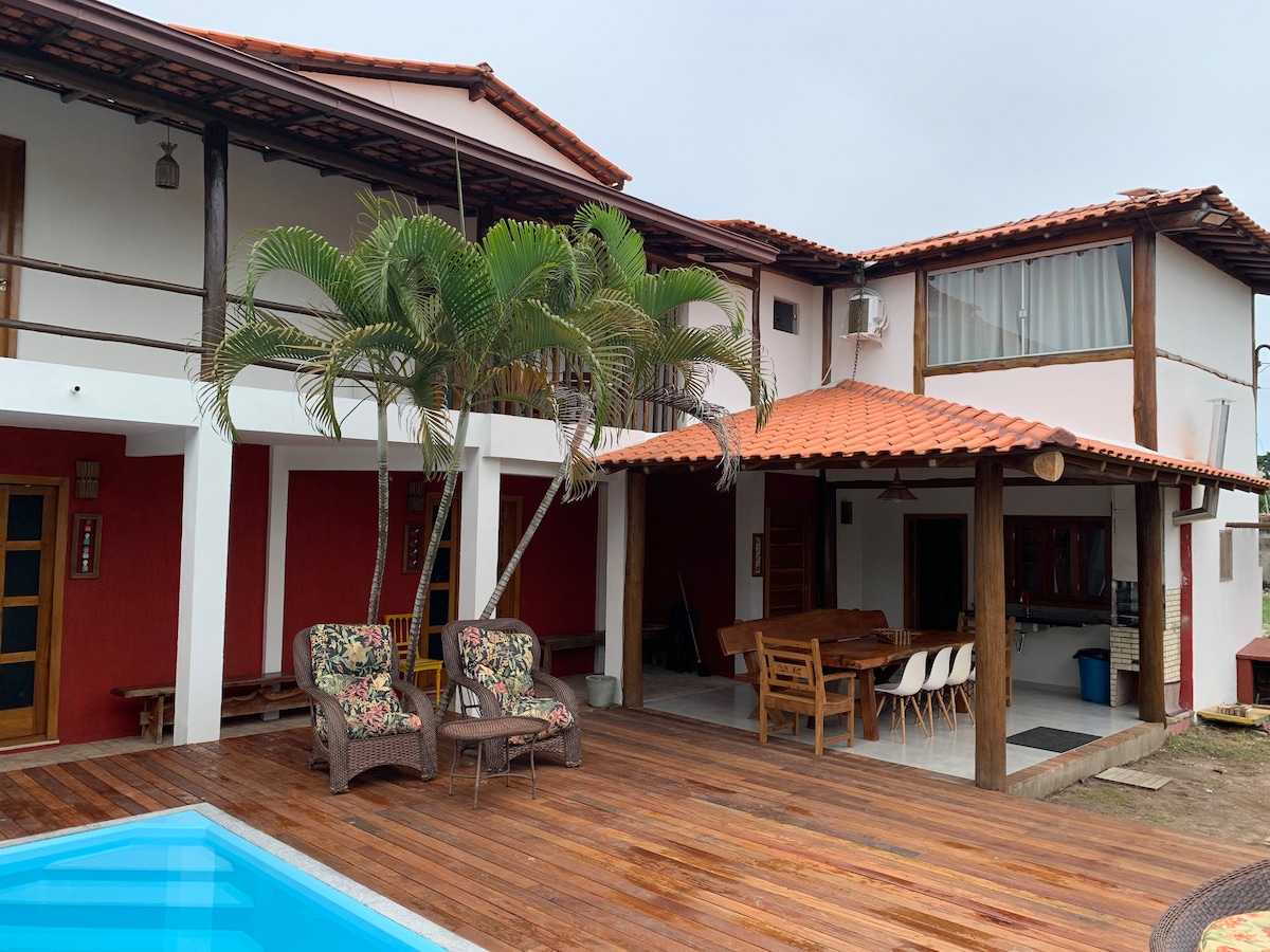 Divirta-se com toda a família neste lugar cheio de estilo , com uma excelente infra estrutura inteira para vc .. Casa com 3 quartos sendo 2 suítes 1 colchao de solteiro em cada quarto a mais , toda mobiliada , ar condicionado em todos os quartos , televisão wyfi , área gourmet com piscina , mesa , televisão , home teatch , gelo par , sinuca , garagem