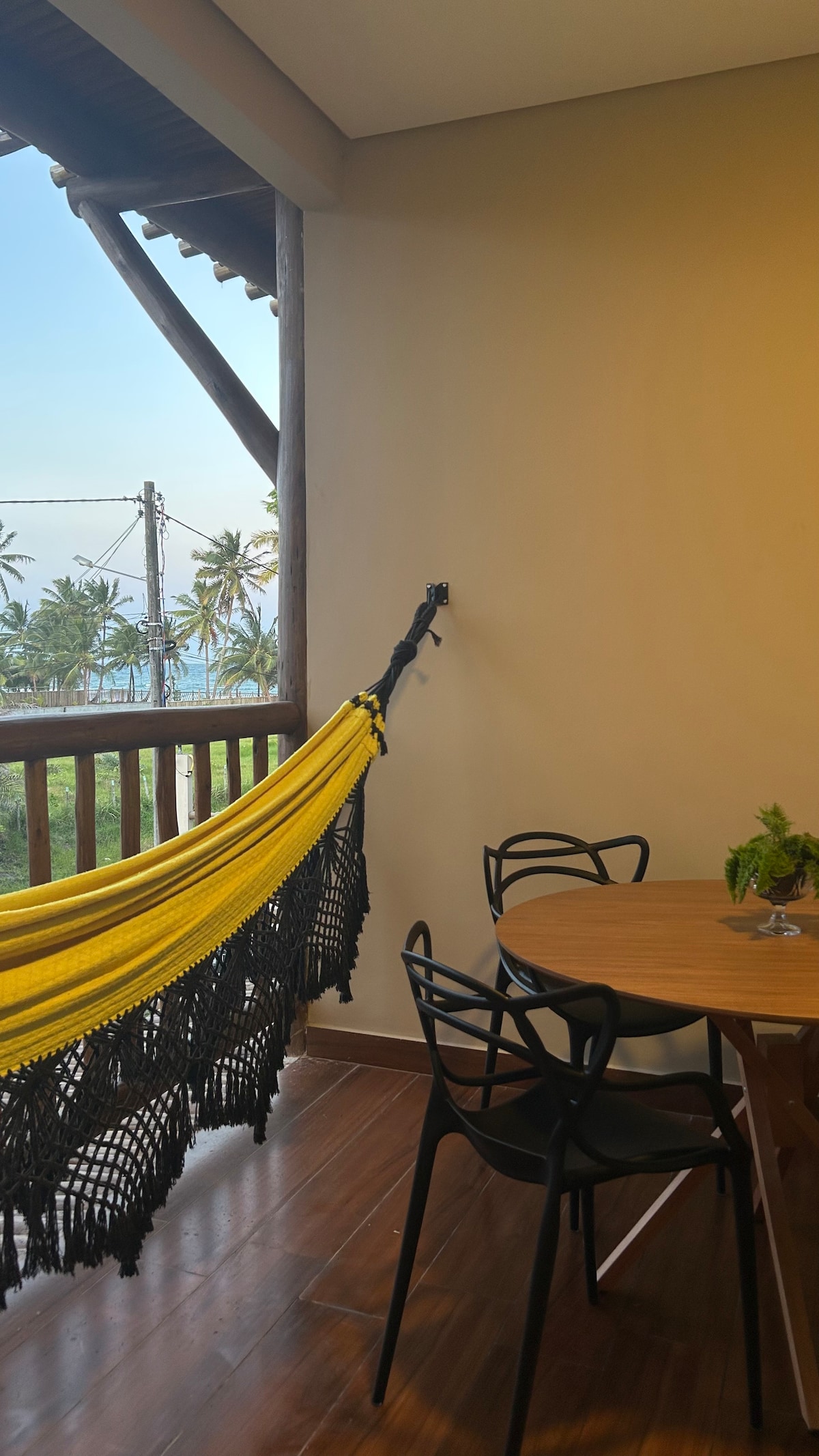 Our charming and romantic Bungalow is all built with wood, on top of a sand dune facing the ocean. It is located by the 100m oceanfront property, Fazenda Maison which is a 14 hectares private area. A/C split Internet wWifi 300 MBps fiber optic Cleaning service daily included King size bed Unique working space-desk overlooking the ocean Outdoor private garden shower Pool (shared with the three houses). BBQ is lakeside, shared with one other house. Kayaks, prancha de surf, inflaveis...free