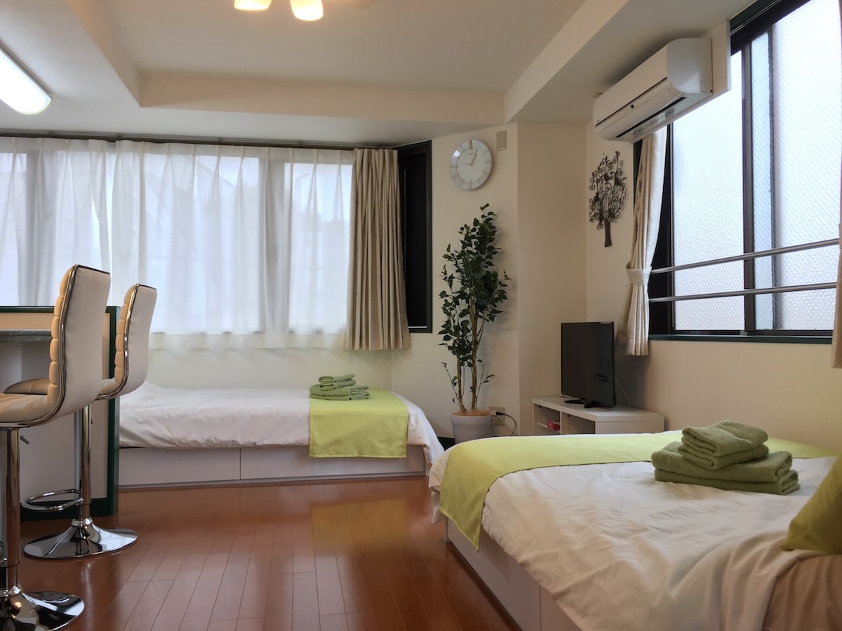 You can find my room so easy. provide 2 double bed(W120). Kameido station(JR Sobu-Line) 3 min by walk. It is great convenient area because it takes only 5min to Ryogoku and Sky tree. 9 min to Akihabara, 13 min to Tokyo station. 15min to Asakusa. My room is designed of Japanese traditional Modern! We have a lot of stores around here. If you have any questions, please feel free to contact us. We have the rooms in the same building. so max7-8 people stay here.