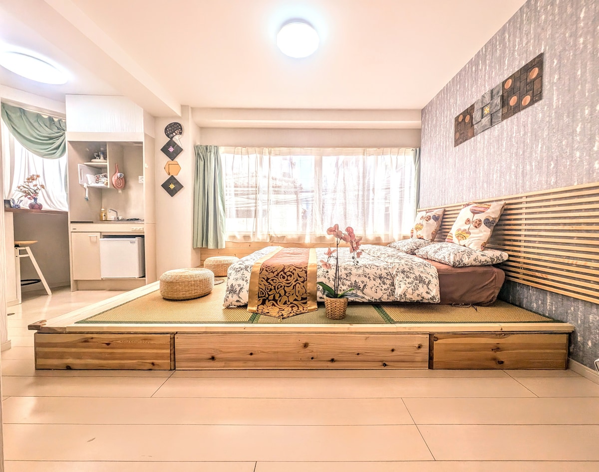 A:高层:浅草寺旁的Wabi-Modern情侣房